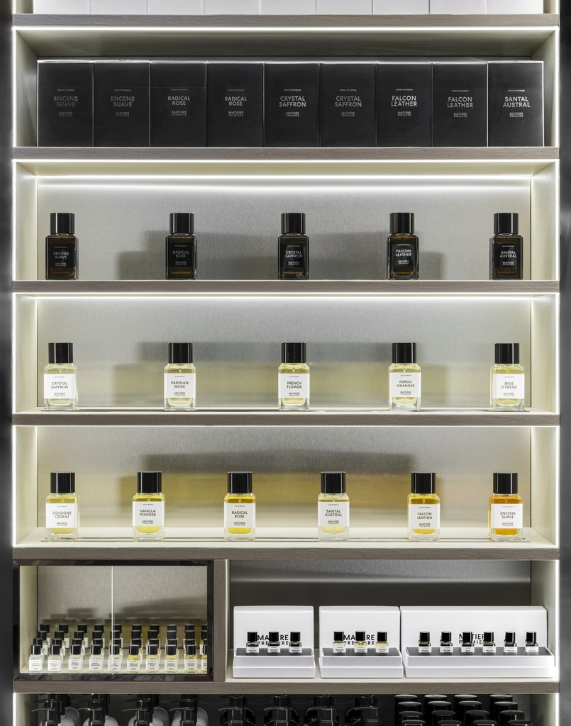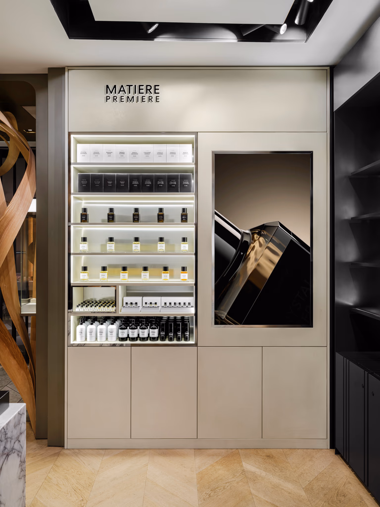 Permanent backwall for Matiere Premiere at Harvey Nichols, London, UK.